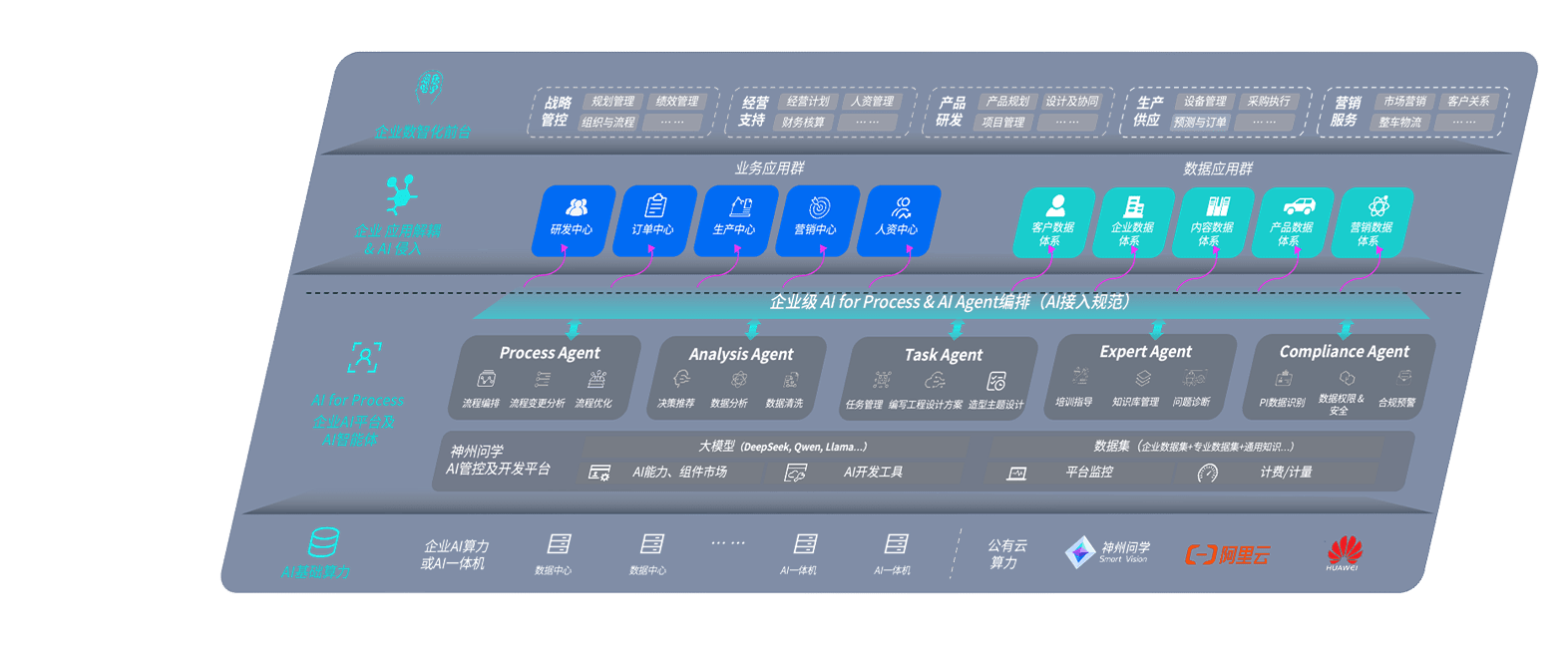 非凡国际问学智车解决方案是一套基于AI技术的汽车行业智能化系统,,,覆盖从底层算力到顶层AI应用的全栈方案。。。方案由算力层、、、模型层和应用层组成:算力层,,方案支持多种一体机配置,,,具备云端灵活部署、、、多云适配以及动态优化计算资源的能力;模型层,,,非凡国际问学平台版提供了企业级AI应用一站式构建与管理平台,,,支持基于后训练强化技术的汽车企业专属模型的训练、、评测和运营;应用层,,,,非凡国际问学DeepSeek版提供包括超级员工、、智能招采、、、智能营销、、智能客服、、、AI for BI等一系列解决方案,,,可助力汽车行业实现数字化转型,,,,让管理更智能、、响应更敏捷。。